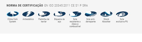 S1Norma de Certificação: EN ISO 20345:2011 CE S1 P SRATAM: 39-48